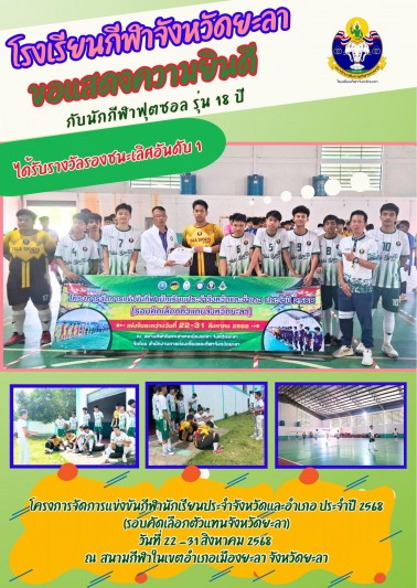 ขอแสดงความยินดีกับนักกีฬาฟุตซอล รุ่น 16 โรงเรียนกีฬาจังหวัดยะลา...