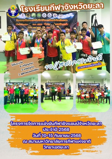 ขอแสดงความยินดีกับนักกีฬามวยสากลสมัครเล่นที่ได้รับรางวัลการแข่งขันกีฬามวยสากลสมัครเล่นโครงการจัดการแข่งขันกีฬาชิงแชมป์จังหวัดยะลาประจำปี...