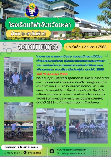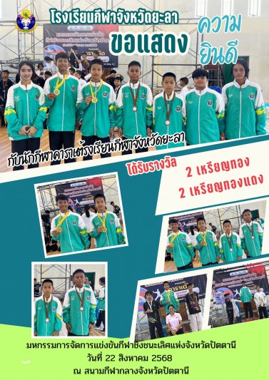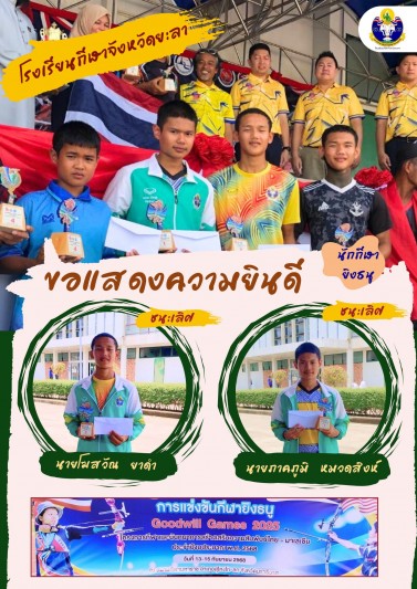 ขอแสดงความยินดีกับนักกีฬายิงธนูโรงเรียนกีฬาจังหวัดยะลาที่ได้รับรางวัลการแข่งขันกีฬายิงธนู...