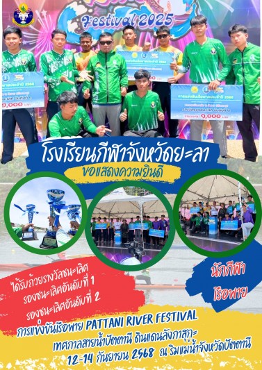 ขอแสดงความยินดีกับนักกีฬาเรือพายโรงเรียนกีฬาจังหวัดยะลาที่ได้รับถ้วยรางวัลการแข่งขันกีฬาเรือพายประจำปี...