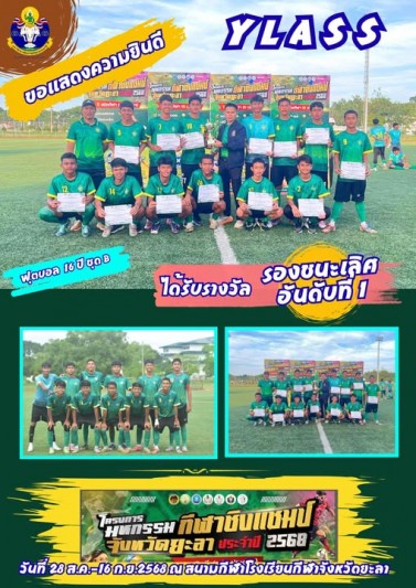 ขอแสดงความยินดีกับนักกีฬาฟุตบอลรุ่น 16 ปี ชุด B ที่ได้รับรางวัลรองชนะเลิศอันดับที่...