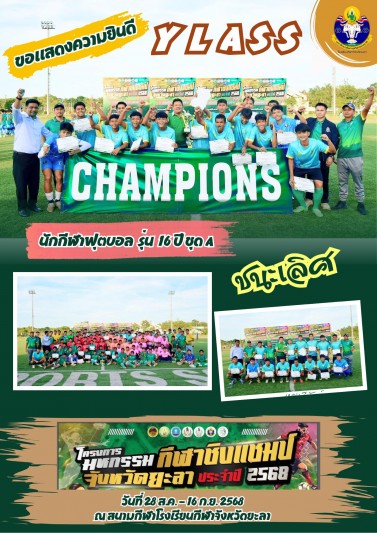 ขอแสดงความยินดีกับนักกีฬาฟุตบอลรุ่น 16 ปี ที่ได้รับรางวัลชนะเลิศ...