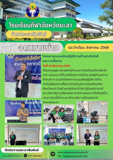 โครงการอบรมเชิงปฏิบัติการด้านเทคโนโลยีและการสื่อสารสำหรับบุคลากรโรงเรียนกีฬาจังหวัดยะลา